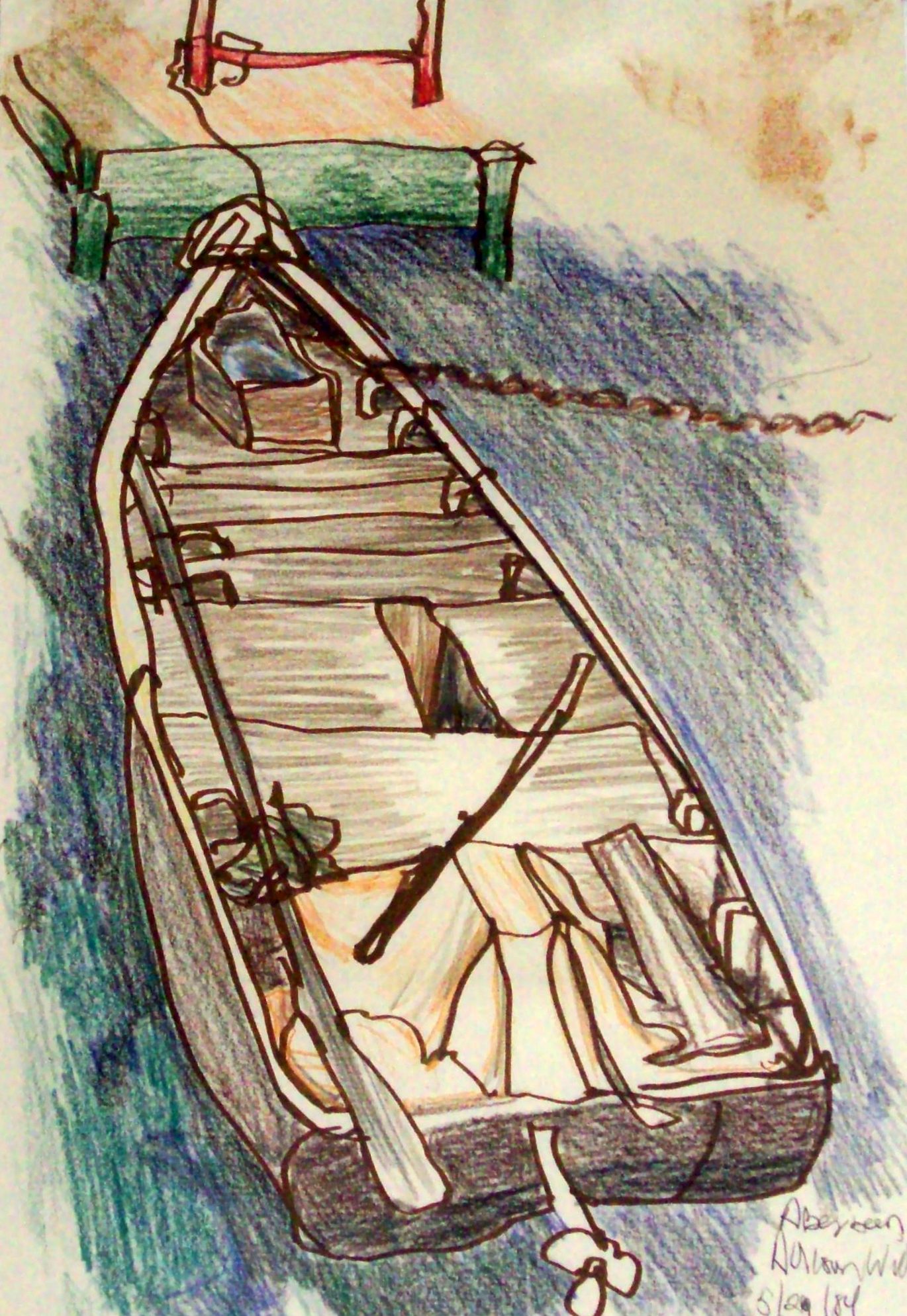 he Row Boat was in Kowloon Harbour in 1984 when I was there. They no longer exist. "Row Boat" was a mixed media of sepia pen; colored pencil, and magic marker sketch that was tethered to a junk in Kowloon Harbour, Hong Kong. Junk boats were anchored; the row boats carried users from shore to their homes on the water.