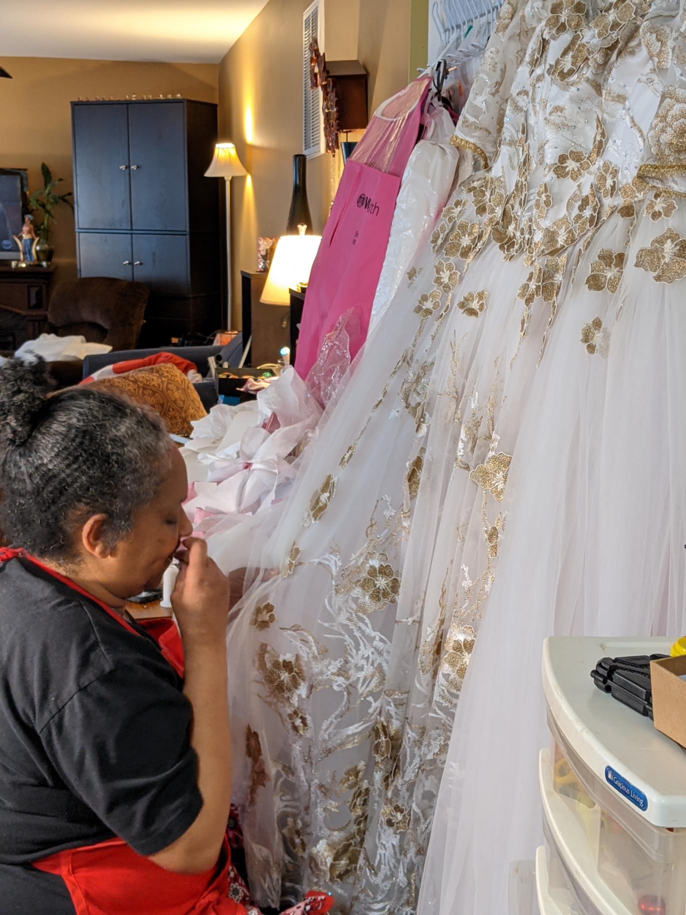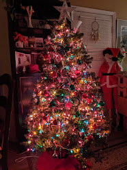 Bobby put up the Christmas tree in 2021 in the evening and early morning around taking care of kids and other duties. I wanted to take at least one image before she took it down. Her mother's and uncles' altars are in the cabinet behind it.