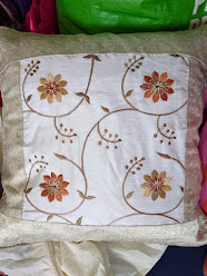 Bobby's inspiration for the pillow above was a gift she received from a friend. She has a collection of fabrics from the world over - Kente; sari fabric and others that she saw would make wonderful accent pieces.