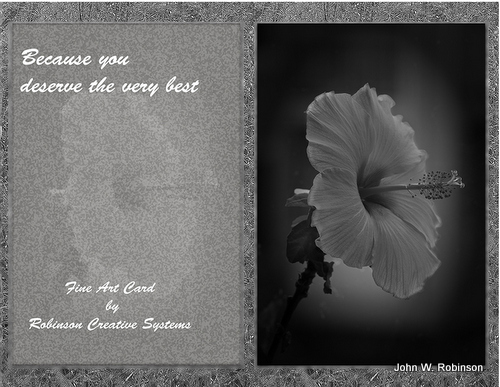 y cousin, John W. Robinson is extraordinary. John made a living as a Food and Drug Administration chemist. He successfully sold his computer programs, and he photographed the wonderful flower images on the cards below.